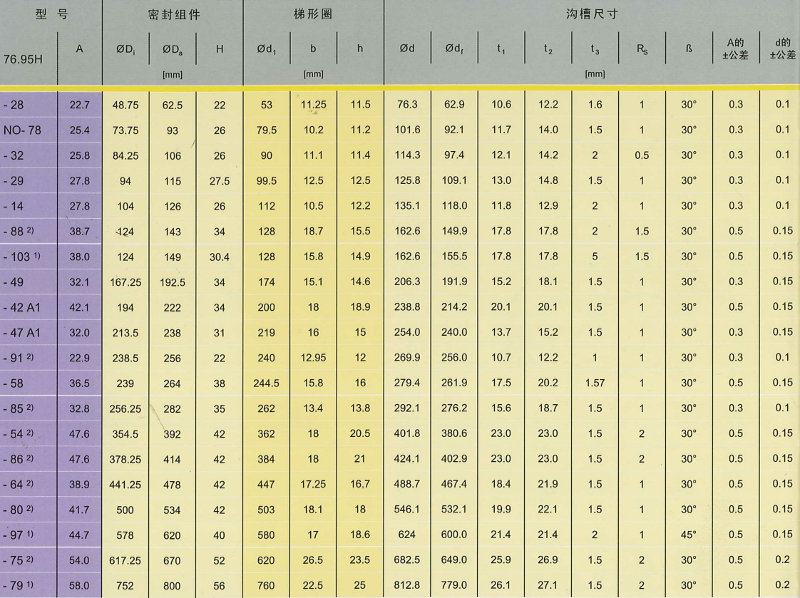 76.95H型相對于76.95型,是一個帶有支撐唇的浮動油封,它在密封環(huán)上加工了凹槽,梯形圈上的凸槽嵌入密封環(huán)上的凹槽中,形成鎖合,它可以防止橡膠圈在惡劣工礦下產(chǎn)生軸向位移,以及金屬環(huán)和橡膠圈之間發(fā)生相對滑動。